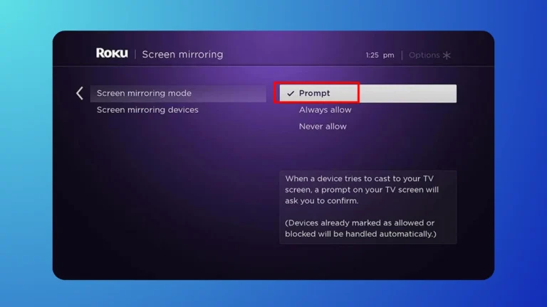 The difference between selecting the prompt and the always allow option is that the prompt will give the confirmation message before connecting the device. The device will only connect with your Roku if you confirm the connection. This option is secure. The other one is always allowed; it will help devices connect automatically with your Roku. No confirmation is needed here.